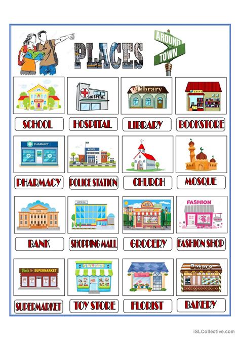 Places in Town English ESL Worksheets for distance learning and from www.pinterest.com.au